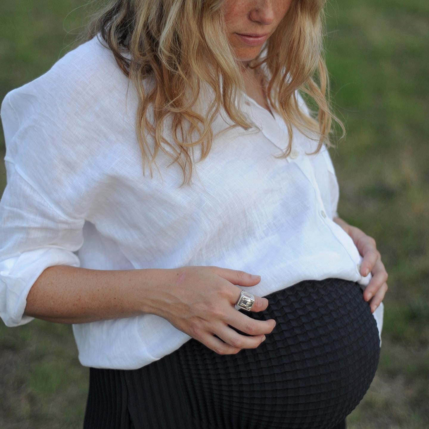 Petit Pliのマタニティボトムスは、独自の構造によって体の変化に合わせて伸縮し、ライフステージを超えて長く寄り添う一着です。