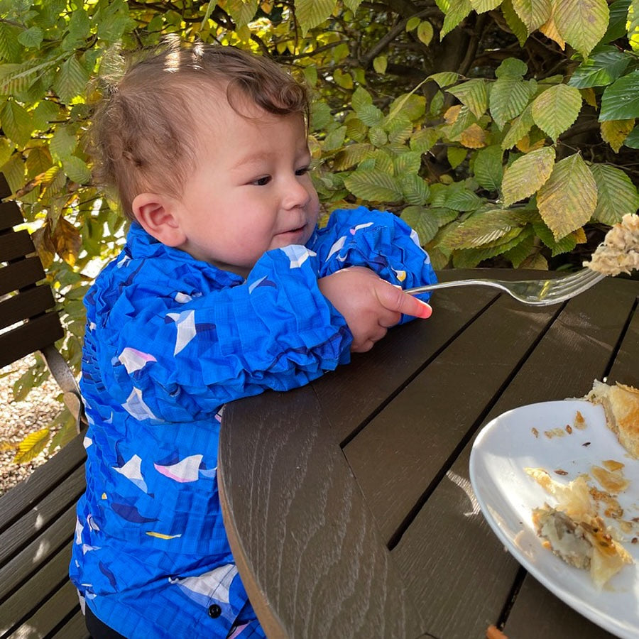 9カ月から5歳(目安)まで着られる成長するジャケット。
